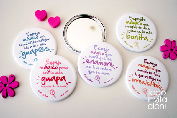 Un regalo para tus invitados de boda divertidísimo de Todoinvitacion: Espejos y abridores MÁGICOS, para que tus invitados se queden con la boca abierta y sientan el poder de la magia cada vez que se miren el espejo y cada vez que abran una botella. ¡¡¡Qué mejor regalo les puedes hacer!!! Tanto los espejos como los abridores van personalizados con vuestros nombres y la fecha de vuestra boda.