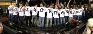 Hay deportistas de lo más originales en esto de pedir matrimonio. Algunos han utilizado un mapa para organizar su propio marathon de boda, cuyo recorrido dice «Cásate conmigo». Otros, han conseguido personalizar unas zapatillas deportivas con la frase de marras, o incluso usando su equipación deportiva.