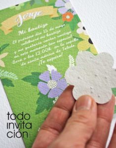 Las invitaciones con semillas que te presentamos están impresas en papel de acuarela con una gran calidad y van a acompañadas de una flor de papel de semillas plantable y unas instrucciones que todos tus invitados verán.