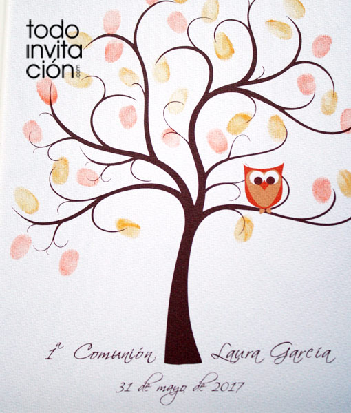 Cuadro de huellas para comunión “Árbol Búho” (2 tamaños)