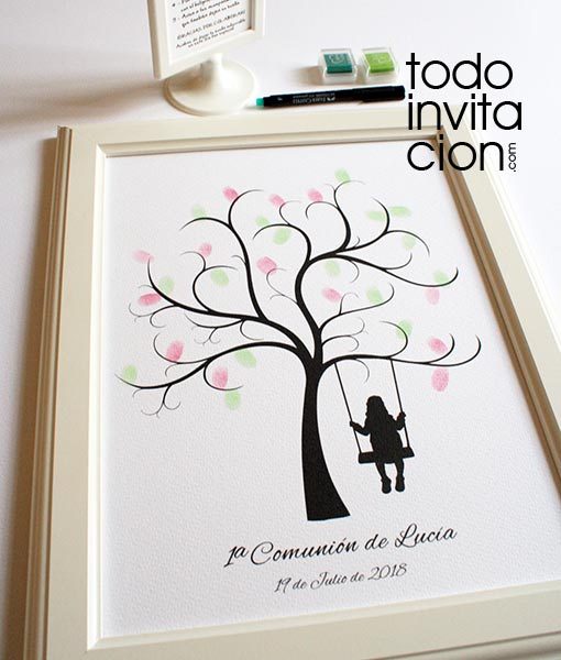 Cuadro de árbol de firmas con huellas para comunión “Árbol Columpio Niña” (2 tamaños)
