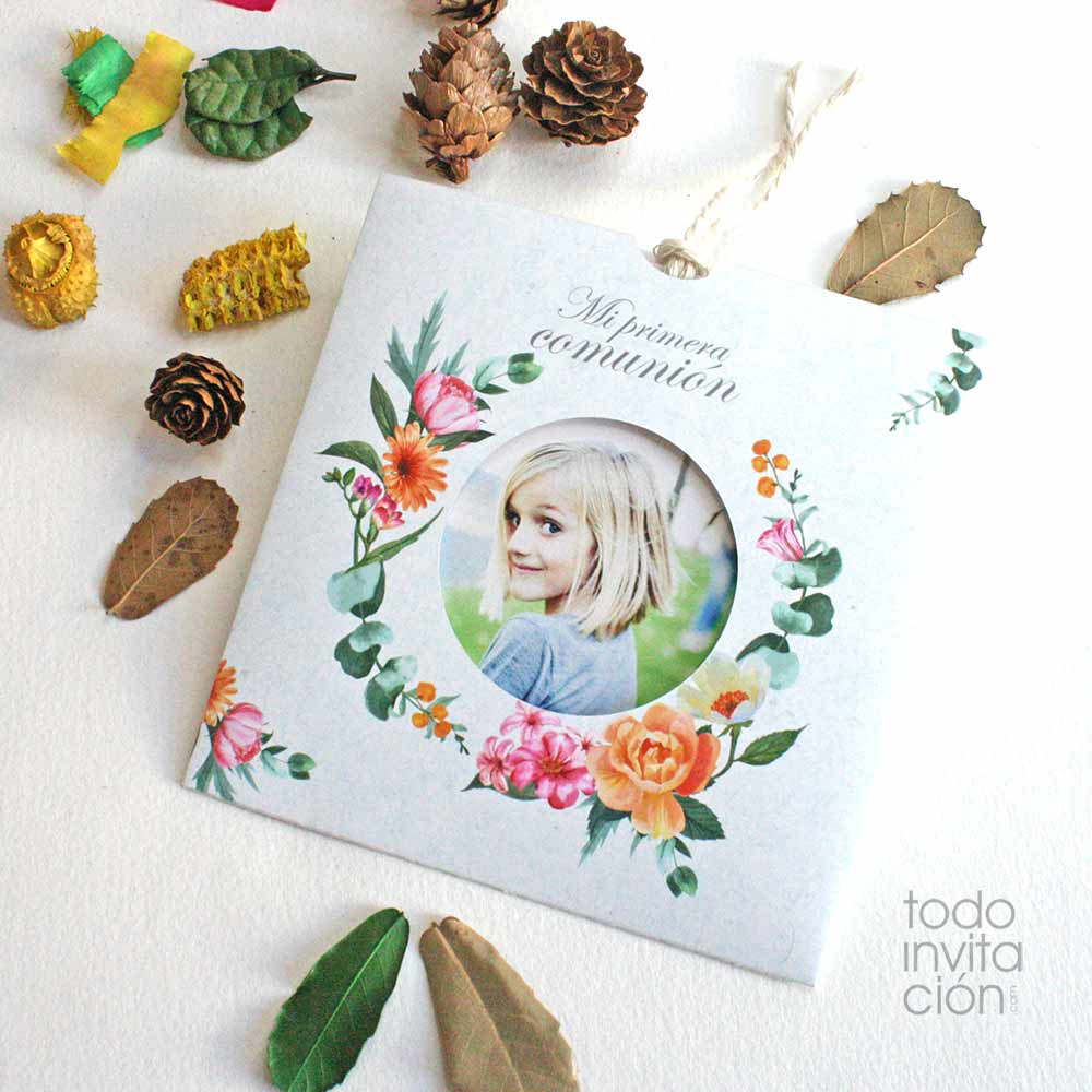 Invitación de comunión – FUNDA FLORES (Papel reciclado)